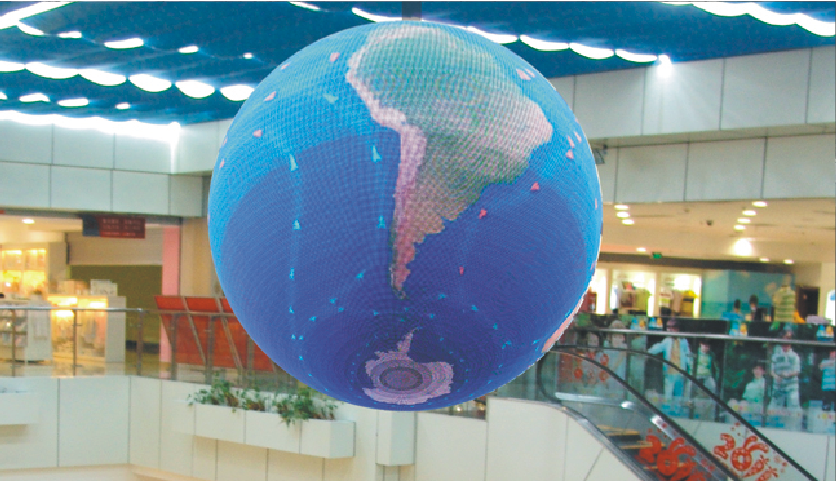 LED球形顯示屏能夠?qū)崿F(xiàn)360度的可視角度,全方位的播放視頻,各個(gè)角度都能感受到良好的視覺(jué)效果,沒(méi)有平面視角的問(wèn)題,并且能夠根據(jù)具體需求將球形素材直接映射到顯示屏上面,比較常見(jiàn)的有地球、足球等,讓人感覺(jué)惟妙惟肖。根據(jù)客戶(hù)需求和安裝環(huán)境定制尺寸大小。