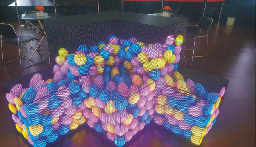 由六個LED面所組成的立方體,面與面之間實現最小縫隙的連接,能夠在周圍多個角度進行觀看,擺脫了傳統平面顯示屏的觀感。可根據客戶要求和安裝環境定制尺寸大小。